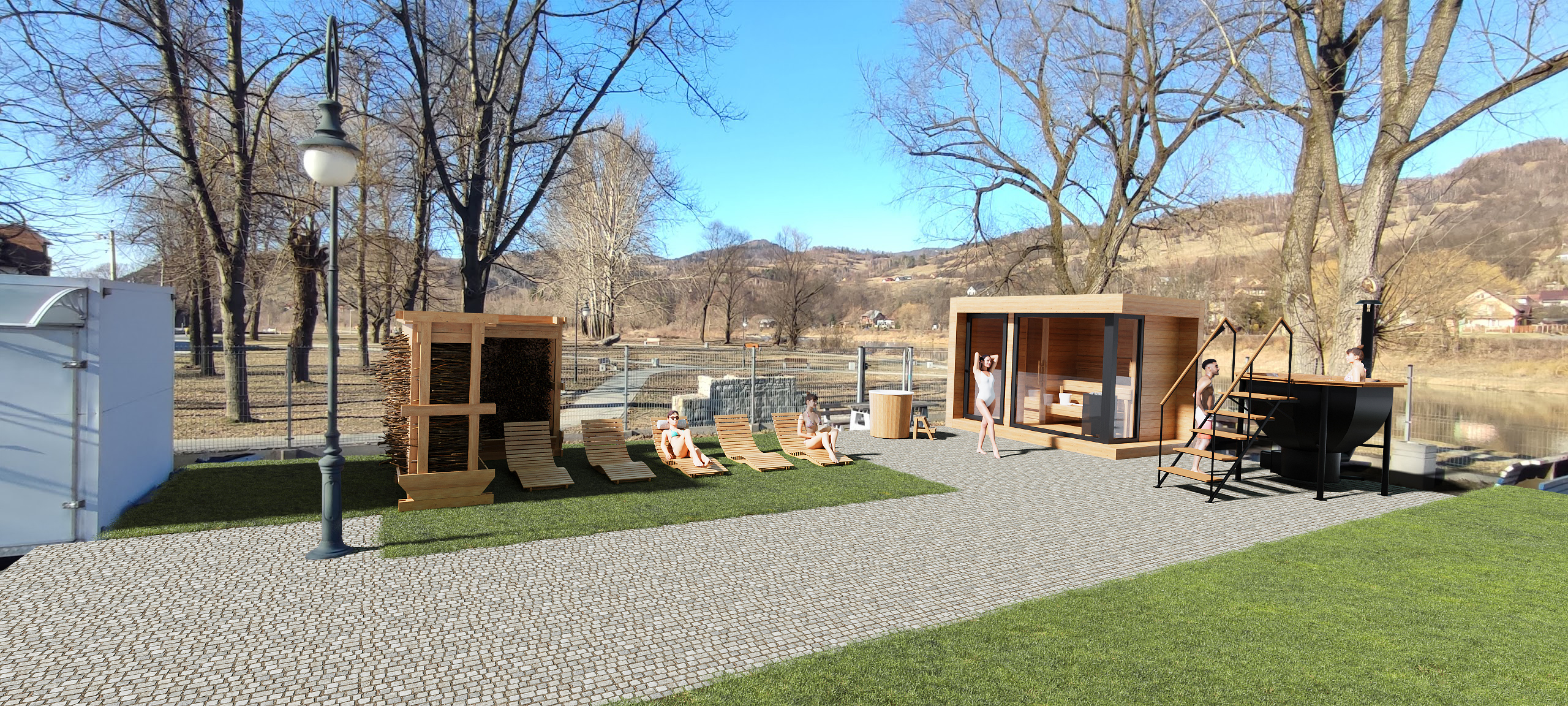• Składa się z Sauny 600 × 250 cm z panoramą, grotą solną oraz prysznicem i WC.